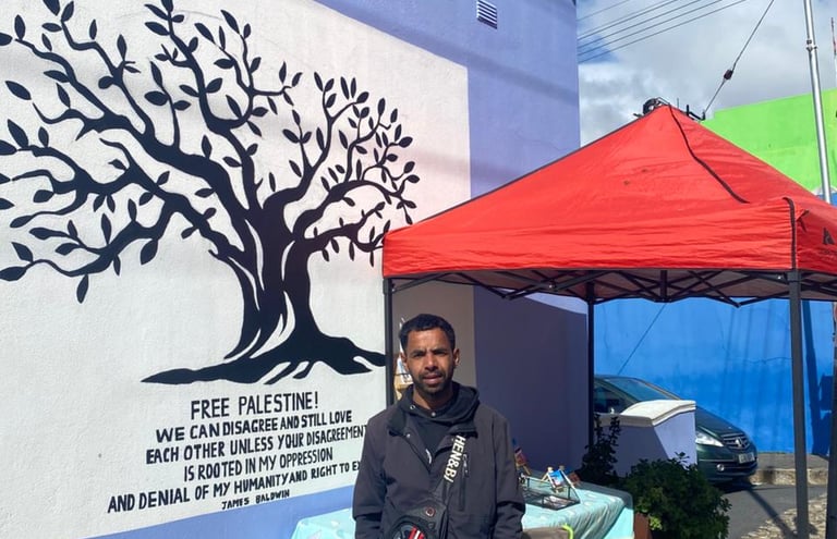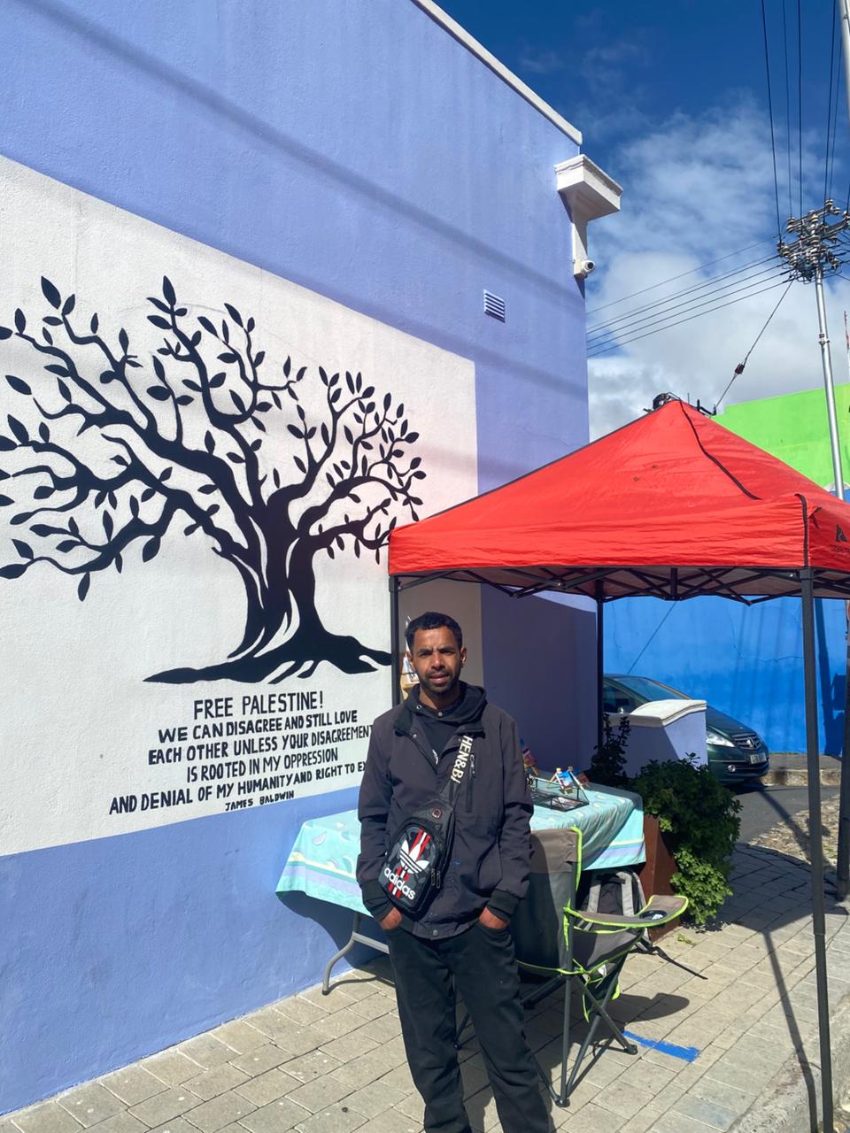 Zakariyah's art centres around giving a voice to the oppressed, particularly in Palestine which where all our hearts are in Bo-Kaap and so this remains the theme of Zaaki's current work which uses an artistic flair in he's murals with messaging that evokes critical thinking and ignite meaningful conversations.